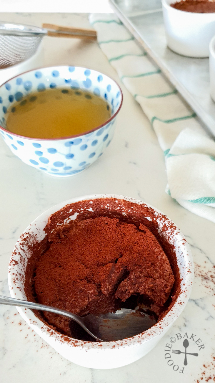 - Let the cakes cool and serve warm or at room temperature. Serve with a dust of cocoa powder, or for more indulgence, chocolate sauce, whipped cream and/or ice cream!