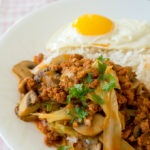 I like to grab whatever vegetables I have on hand and threw into the frying pan. Cabbage, mushrooms, carrot, peas etc are good addition and make a more wholesome dish. I also like to fry some sunny side eggs to go with this dish – mixing the oozy yolk with the sauce into the rice is pure bliss!
